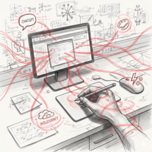 KI ist seit drei Jahren DAS bestimmende Innovations-Thema – nicht nur in der Kreativbranche. Mir war früh klar, dass ich hier am Ball bleiben muss. Seit über zwei Jahren nutze ich regelmäßig bekannte Tools für private und berufliche Zwecke.